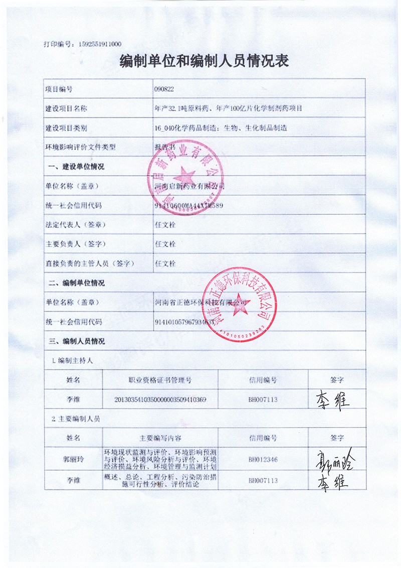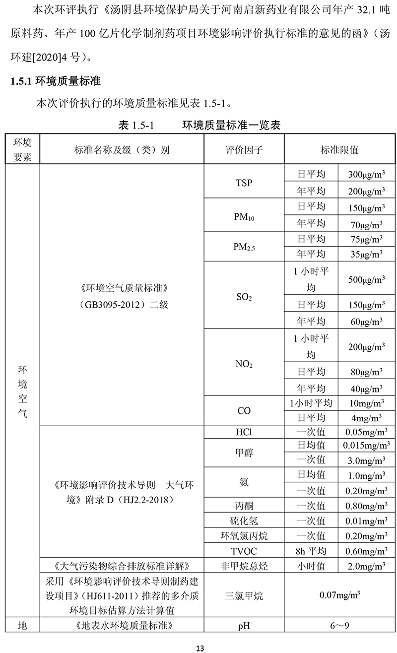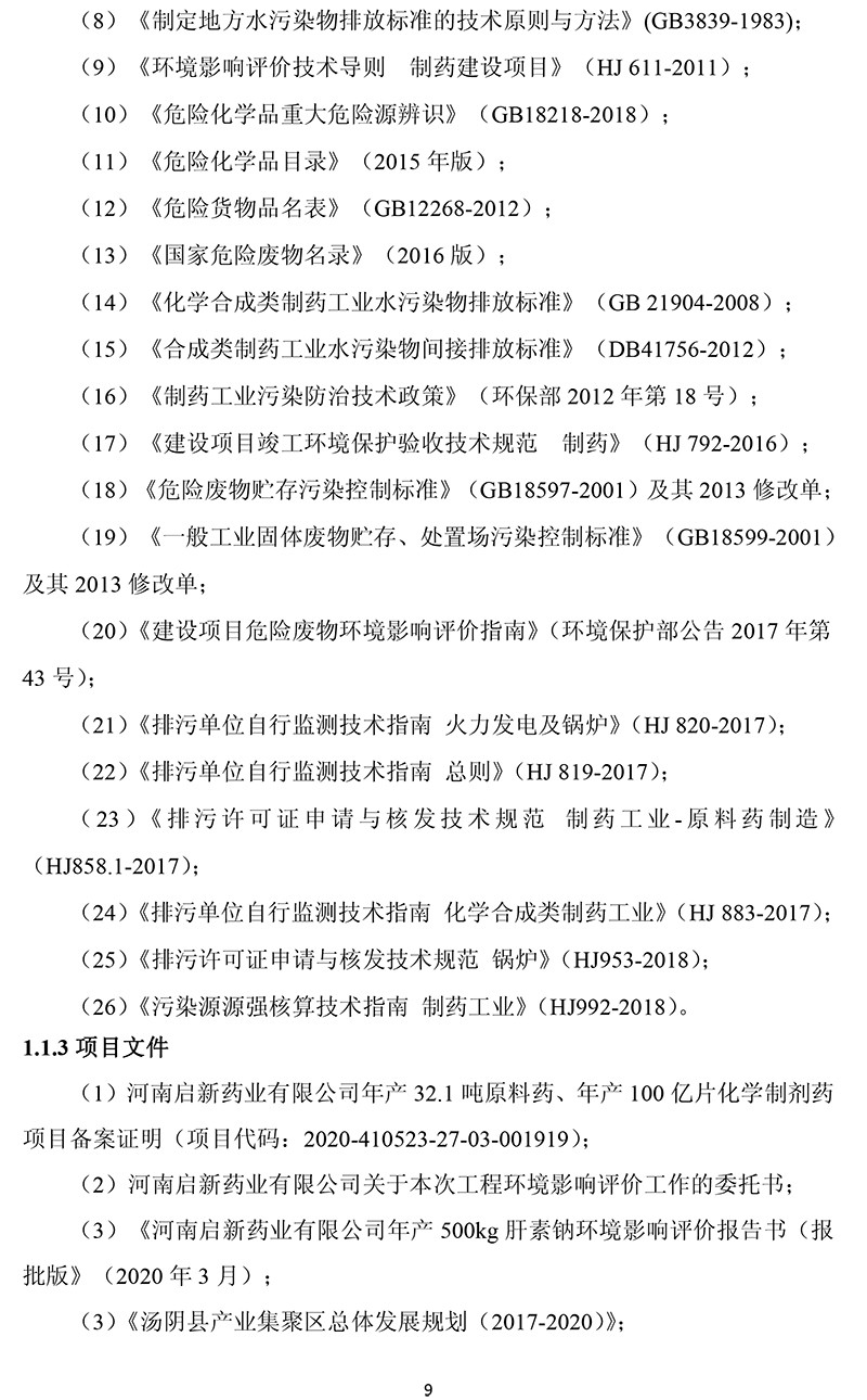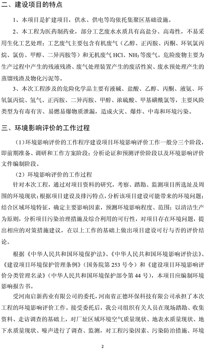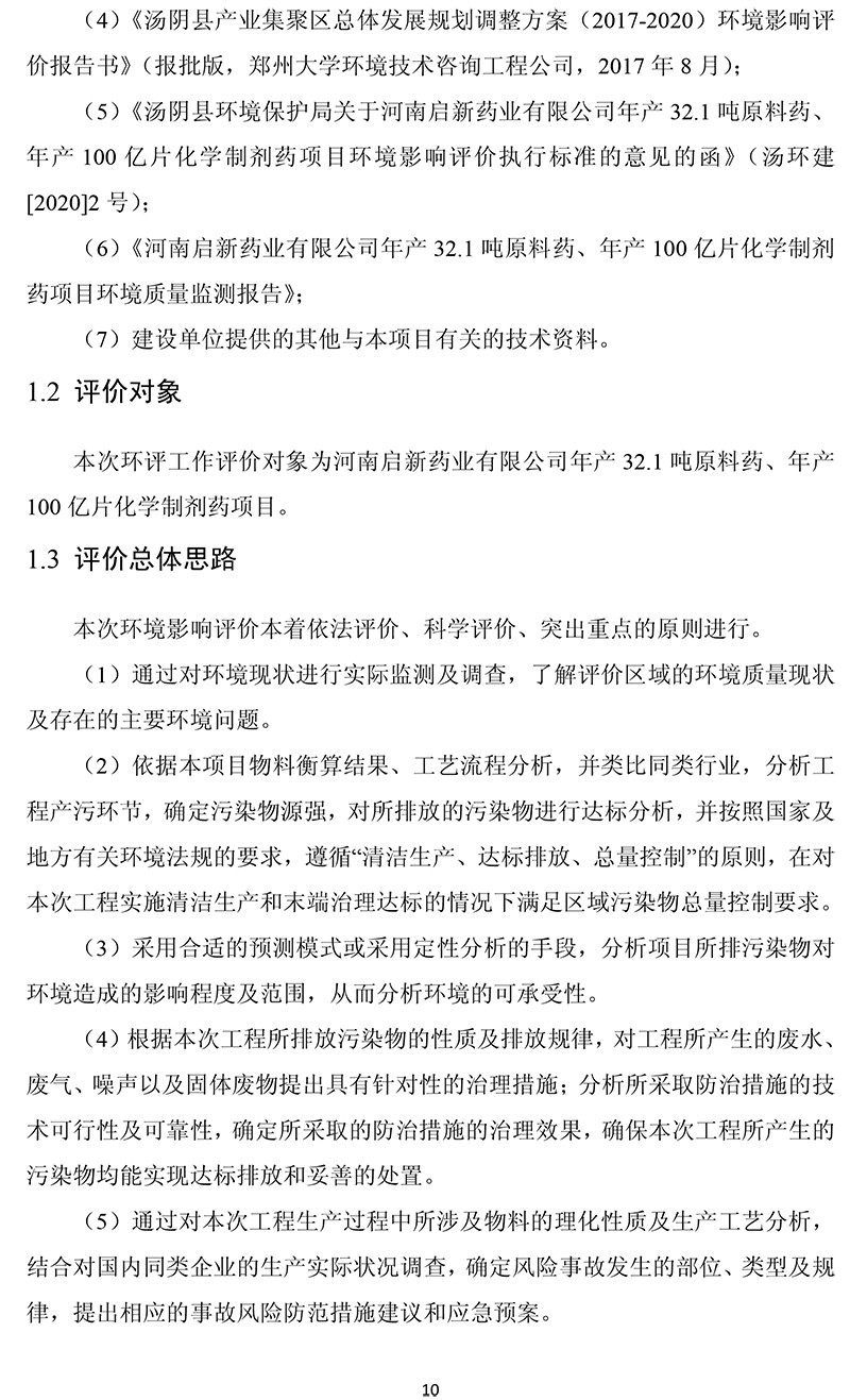 河南啟新藥業有限公司年產32.1噸原料藥、年產100億片 化學制劑藥項目 環境影響報告書